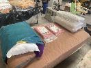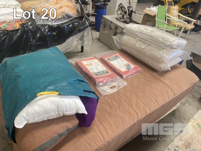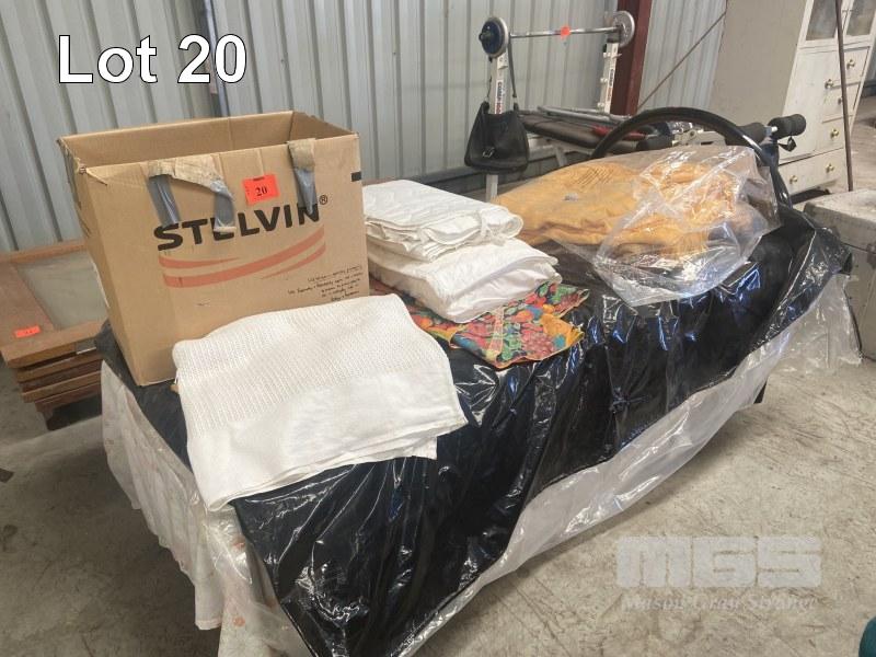 2 x SINGLE BEDS, BLANKETS, QUILTS & 2 x INFLATABLE MATTRESSES