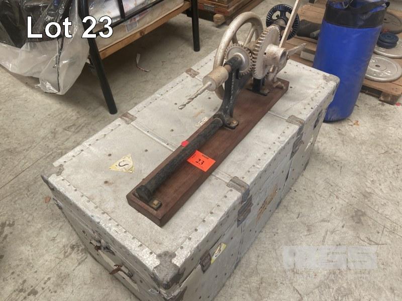 BUFFALO FORGE CO POST DRILL & ALUMINIUM TRAVEL CASE, OLD, 1000 x 520 x 500mm