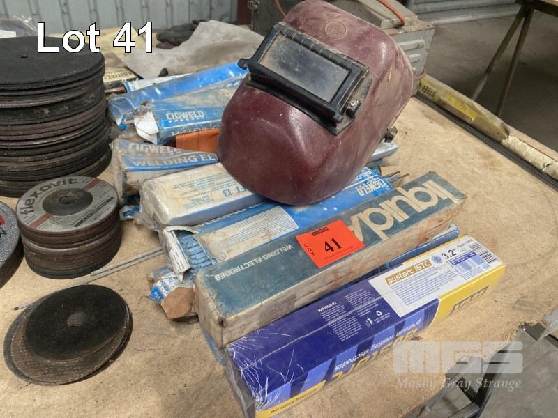 WELDING ACCESSORIES, WELDING RODS, MASK, HEAT BOX, GLOVES, GRINDING DISCS, WELDERS, CURTAINS, TIG LEAD & GAUGE & WIRE ROD