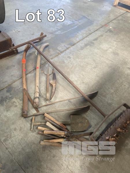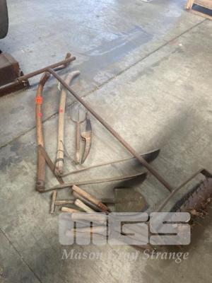 10 x PIECES EARLY GARDEN HAND TOOLS, SHEAR, SCYTHES, ROLLERS