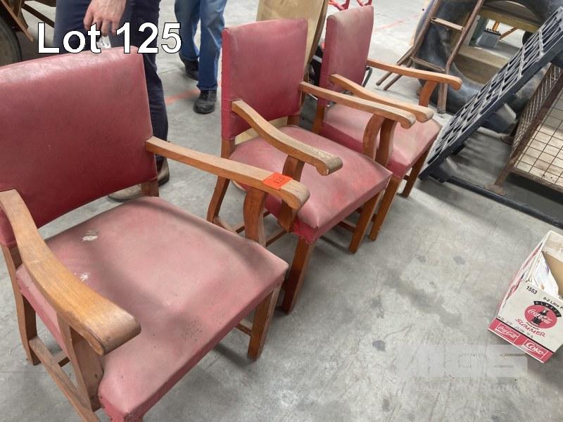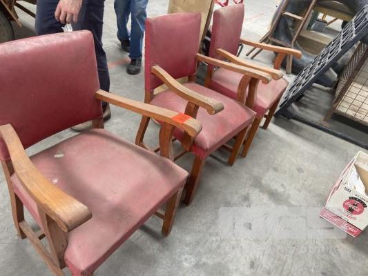 3 x ANTIQUE TIMBER & VINYL CHAIRS