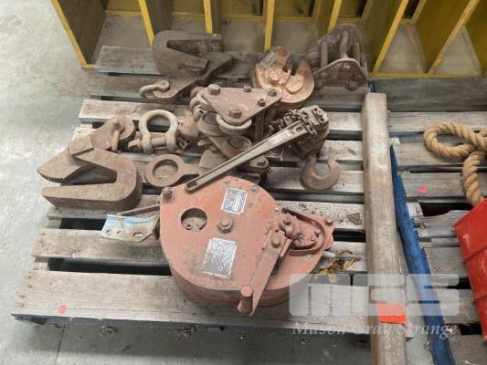 COLLECTION ROPES, SIEVE BLOCKS, OLD SCHOOL PLATE CLAMPS, TROLLEYS & WINCH