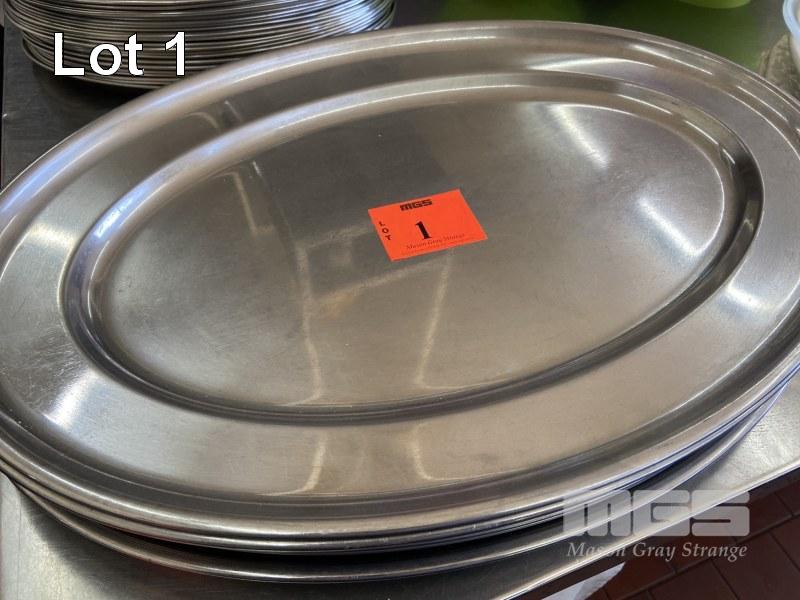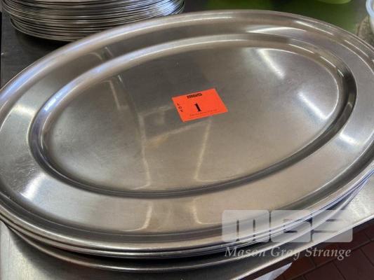 14 x STAINLESS STEEL SERVING TRAYS, 600 x 400mm