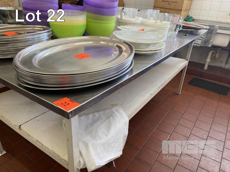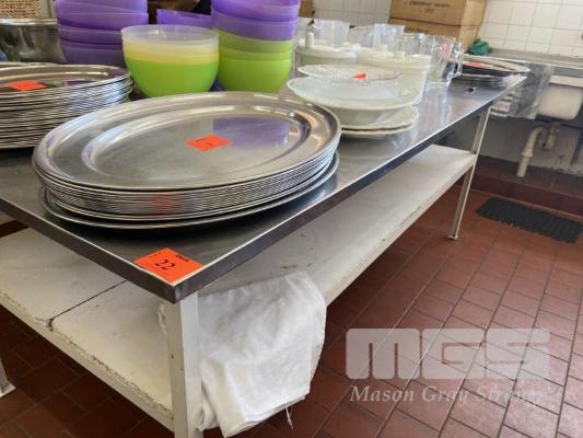 STAINLESS STEEL TOP PREP BENCH, STEEL FRAME, 2350 x 1150mm, WITH STORAGE SHELF