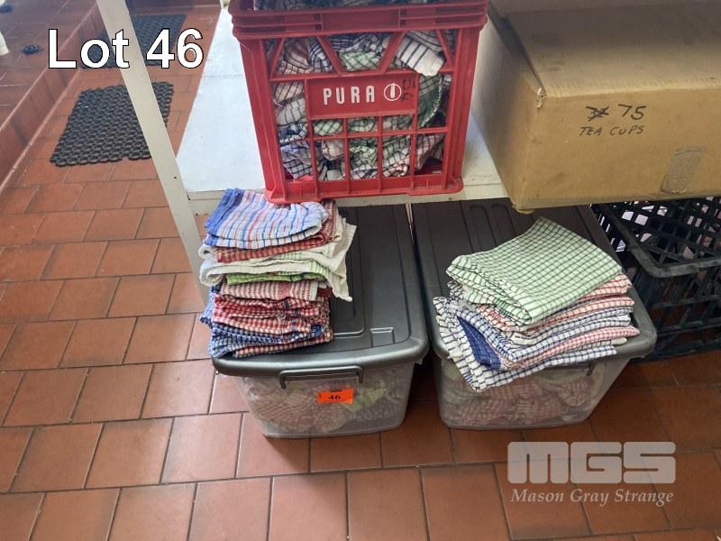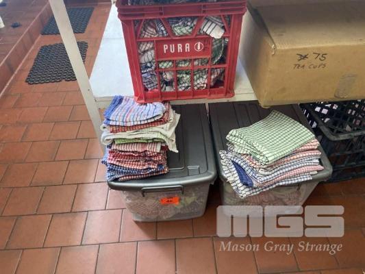 200 (APPROX) x TEA TOWELS & 2 x TUBS