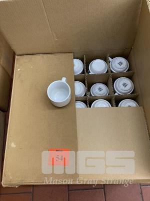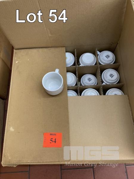 75 WHITE PORCELAIN TEA CUPS NEW IN BOX.