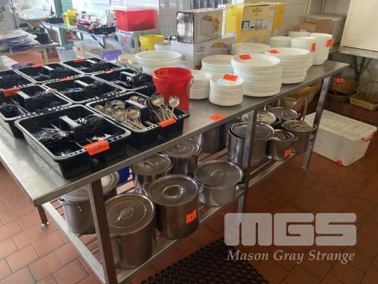 STAINLESS STEEL PREP BENCH, DOUBLE SIDED, 2300 x 1150mm, 6 x LEGS & BAR TYPE LOWER RACK