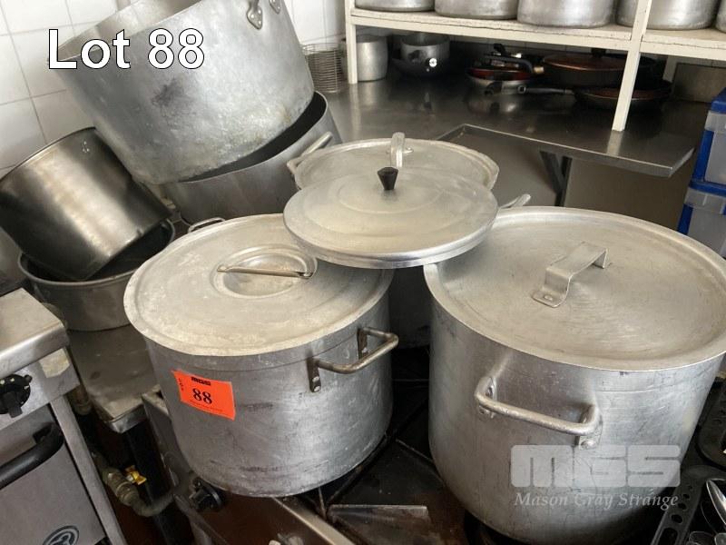 8 x ALLOY STOCK POTS, 15 LITRE TO LARGE