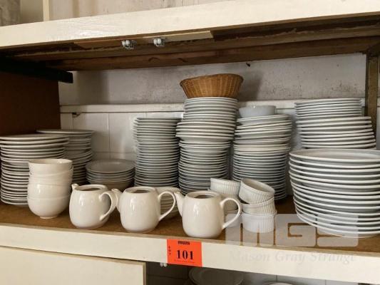 150 (APPROX) x SAUCERS, MILK JUGS, BOWLS & CONDIMENT BOWLS