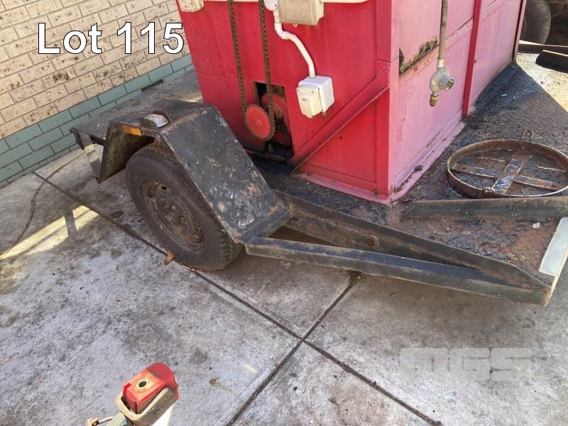 FLAT TOP, SINGLE AXLE TRAILER REG: NO PLATE RUBBER HITCH, JOCKEY WHEEL SUIT PADDOCK WORK TOP TO BE REMOVED