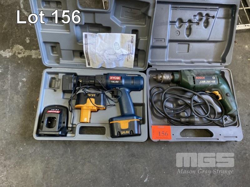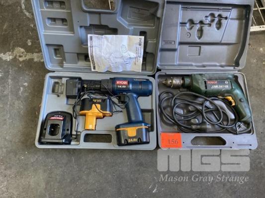 BOSCH DRILL IN CASE, MOD: CSB 55ORE 240V & RYOBI CORDLESS HAND DRILL IN CASE 14.4V