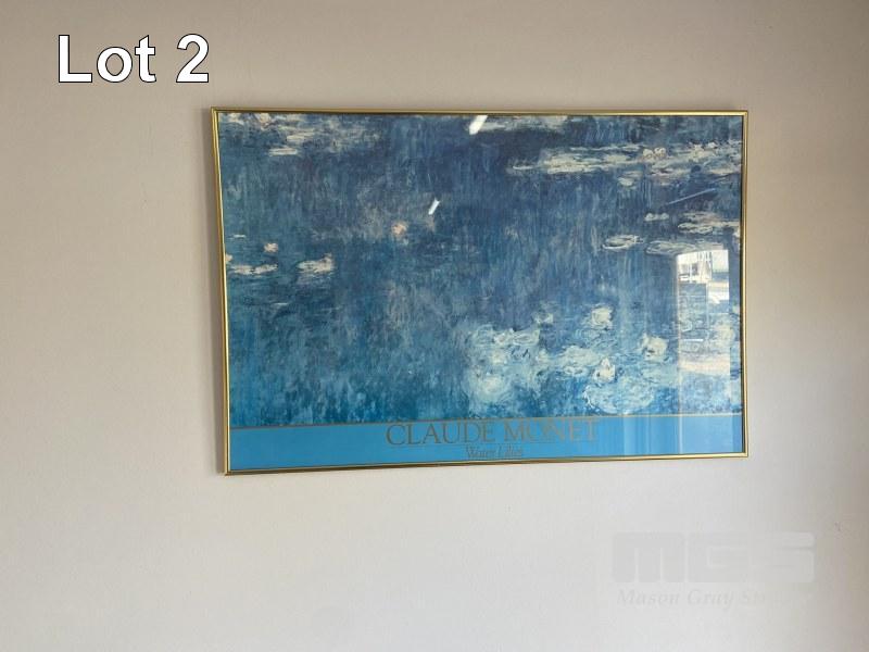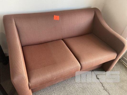 2 SEATER COUCH, SMALL COFFEE TABLE & GLAZED WALL PRINT