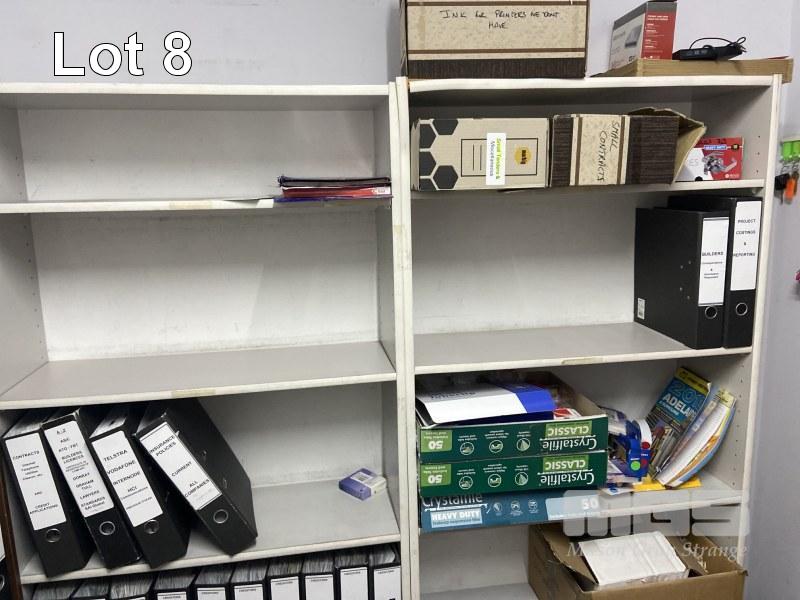 3 x BOOKSHELVES, 4 DRAWER UNIT, FILE RACK & 2 DRAWER FILING CABINET