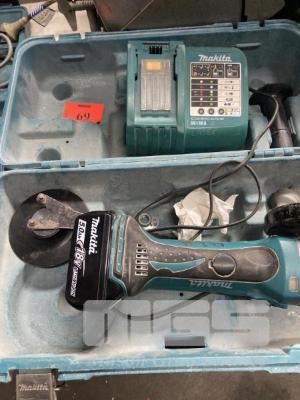 MAKITA CORDLESS ANGLE GRINDER 115mm, 5 AMP BATTERY WITH CHARGER IN CARRY CASE