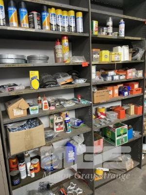 SPRAY PAINTS, HARDWARE, OILS, BRACKETS, CLAMPS, GALV STRIP, GALV WIRE CONTENTS 2 x BAYS SHELVING