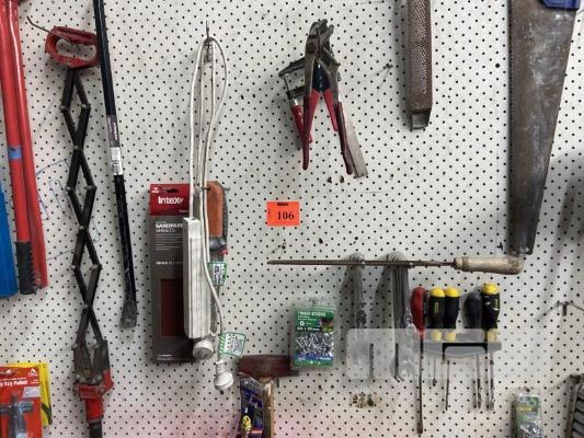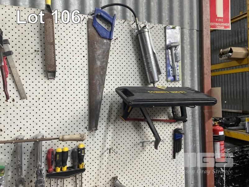 RIVET GUN, SAWS, SOCKETS, SPANNERS, SLEDGE HAMMER, HEX KEYS & MORE CONTENTS SHADOW BOARD