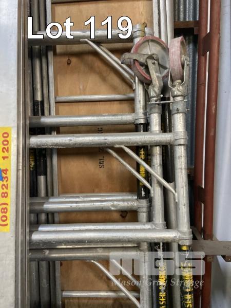 3 mtr x 3 mtr MOBILE SCAFFOLD, VERTICAL SCAFFOLDS APPROX 6m (H) WITH LADDERS & KICKBOARDS