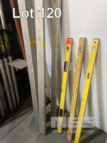 3 x STANLEY LEVELS, 1200mm WITH 6 x ALLOY STRAIGHT EDGES 1.8-3.5m