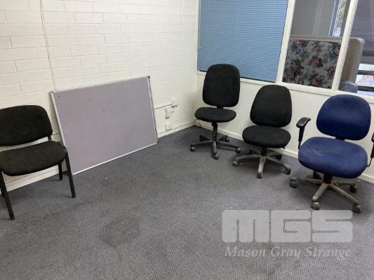 3 x PINBOARDS, 3 x OFFICE & VISITORS CHAIRS, ETC