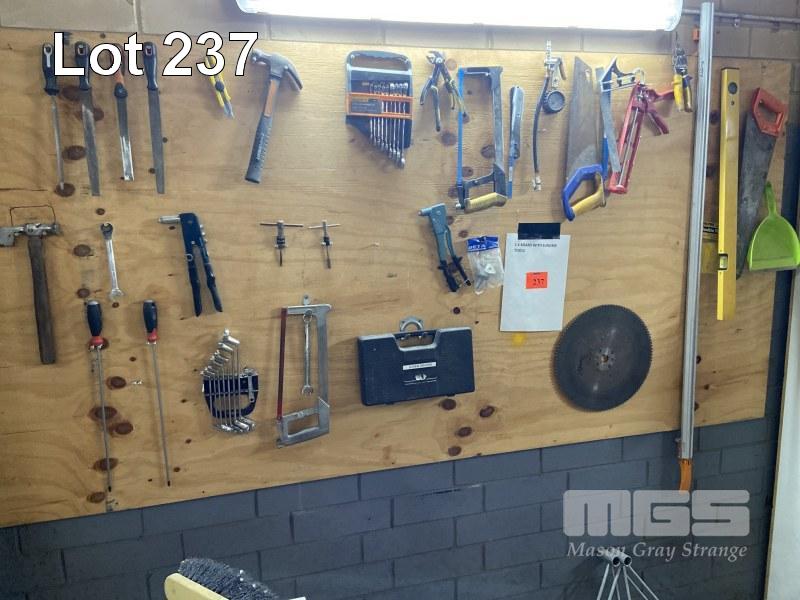 TOOL SHADOW BOARD INC FILES, SPANNERS, RIVET GUNS, SAWS, DRIVERS, TAPS, ETC