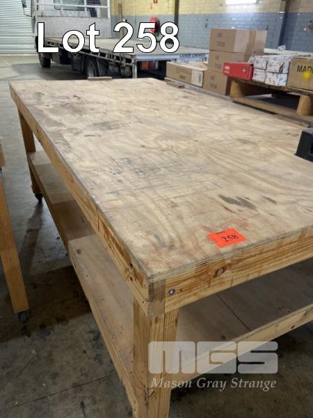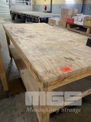 TIMBER FRAME LAYOUT BENCH, PLYBOARD TOP, 2400 x 1200mm & SHELF, MOBILE