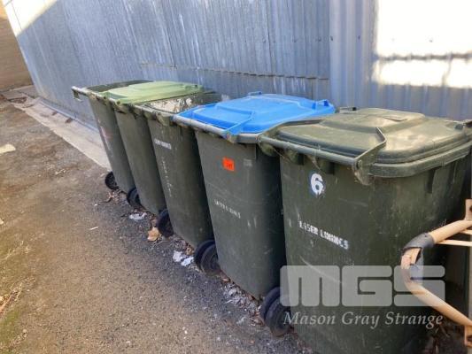 5 x WHEELIE BINS, 240 LITRE, NO LIDS