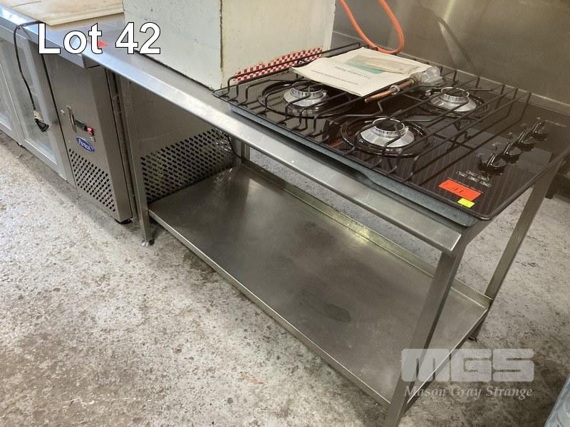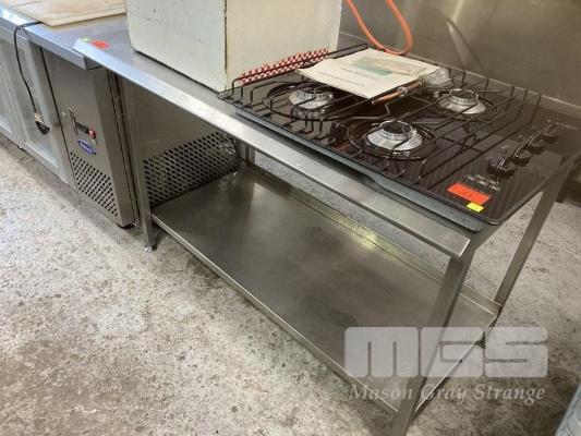 STAINLESS STEEL PREP BENCH, 130 x 80cm, 2 TIER, WITH SPLASHBACK