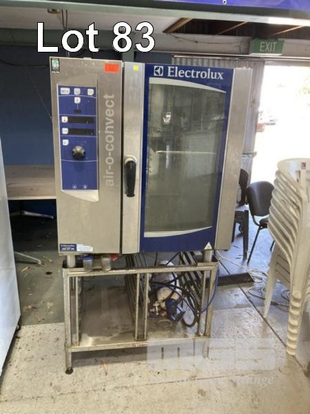 COMBI OVEN, ELECTROLUX, AIR-O-CONVECT MOD: A0S101ECA1 10 TRAY CAPACITY DIGITAL DISPLAY STAINLESS STEEL CASED, 415V ON STAND