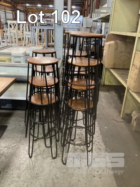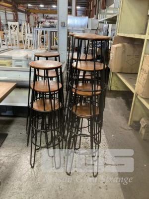 14 x BAR STOOLS, STEEL FRAME, TIMBER SEAT
