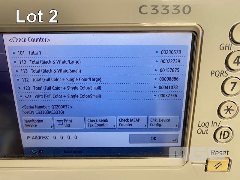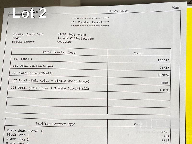 PHOTOCOPIER, CANON imageRUNNER ADVANCE C3330 COLOUR, ADF, PRINTER USB & NETWORK PORTS, INNER FINISHER, 49,964 COLOUR & 180,613 B&W COPIES SHOWING (TEST PAGE ATTACHED) S/N:QTZ00622