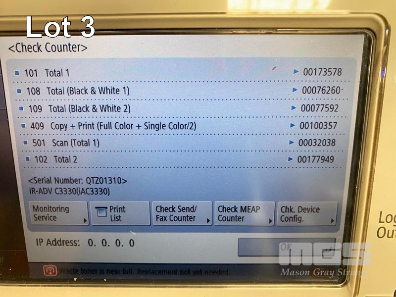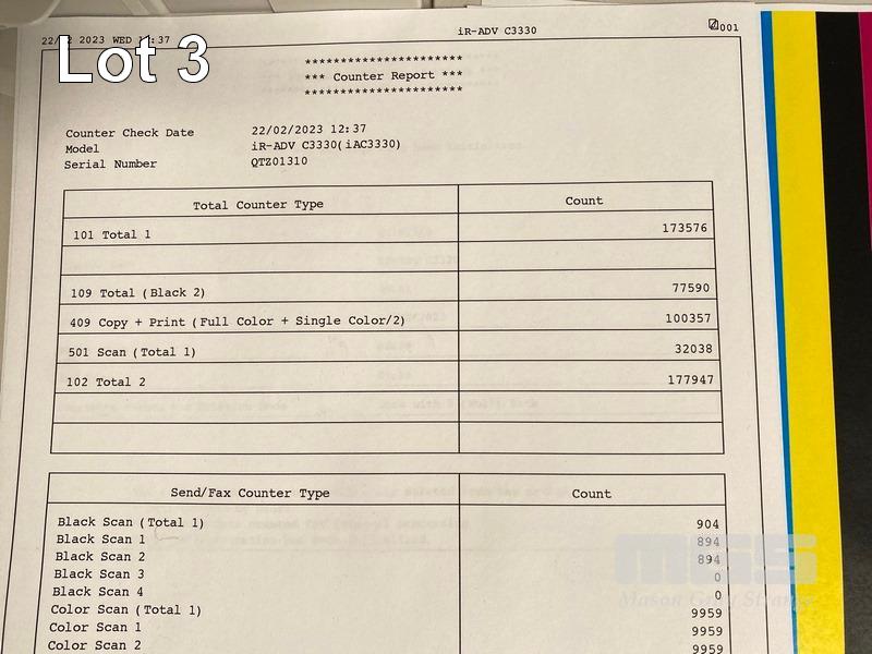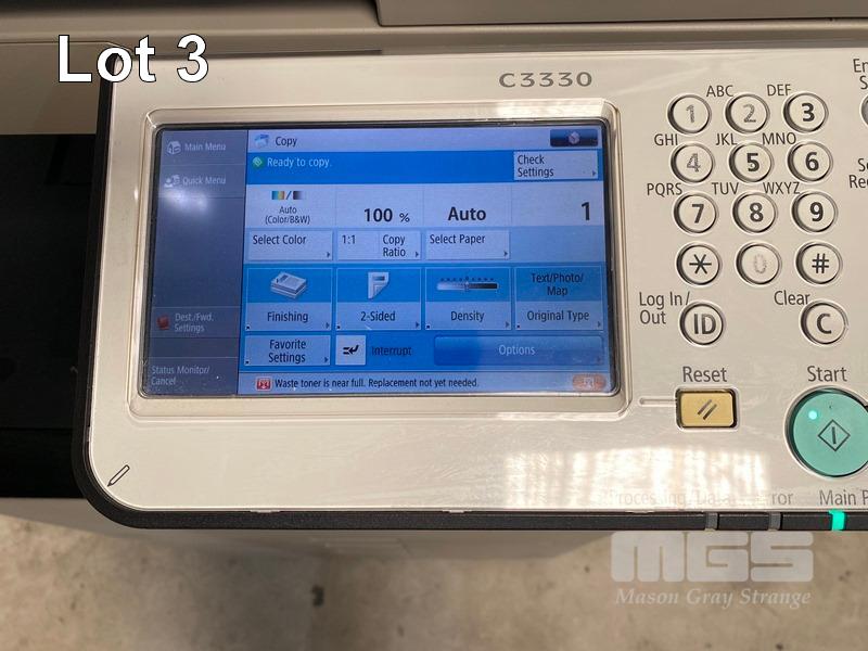 PHOTOCOPIER, CANON imageRUNNER ADVANCE C3330 COLOUR, ADF, PRINTER USB & NETWORK PORTS, 100,357 COLOUR & 77,592 B&W COPIES SHOWING (TEST PAGE ATTACHED) S/N:QTZ01310