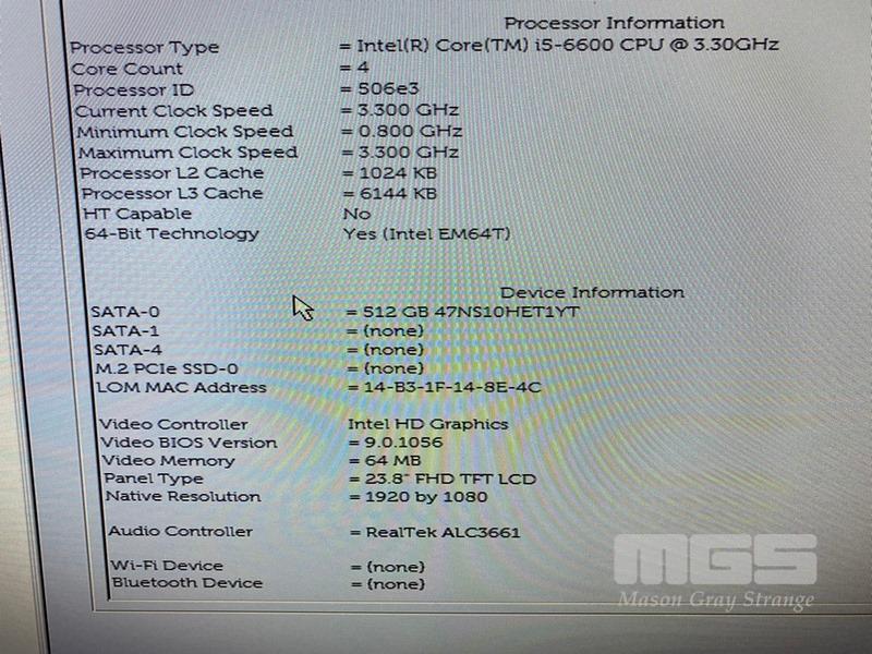 ALL-IN-ONE PC, DELL OPTIPLEX 7450, CORE i5 6600 (6TH GEN) @ 3.3GHz, 16GB DDR4 RAM, 512GB SSD, INBUILT 23.8" FHD WIDESCREEN (1920x1080), INTEL HD VIDEO, WEBCAM, 7 x USB, 1 x USB-C, WINDOWS 10 HOME INSTALLED KEYBOARD & MOUSE S/N:48RWCK2