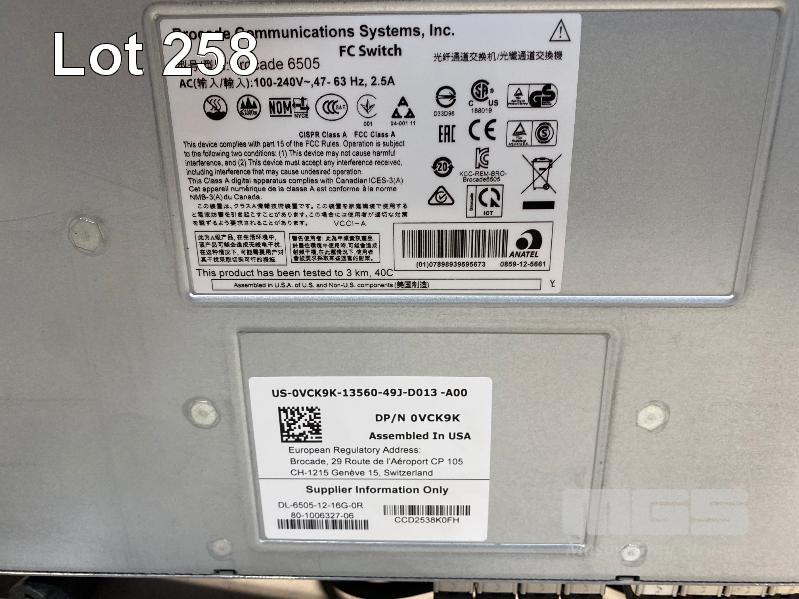 BROCADE 6505 16Gbps FIBRE CHANNEL SWITCH, DL-6505-12-16G-0R (NO CABLES) S/N:CCD2538K0FH