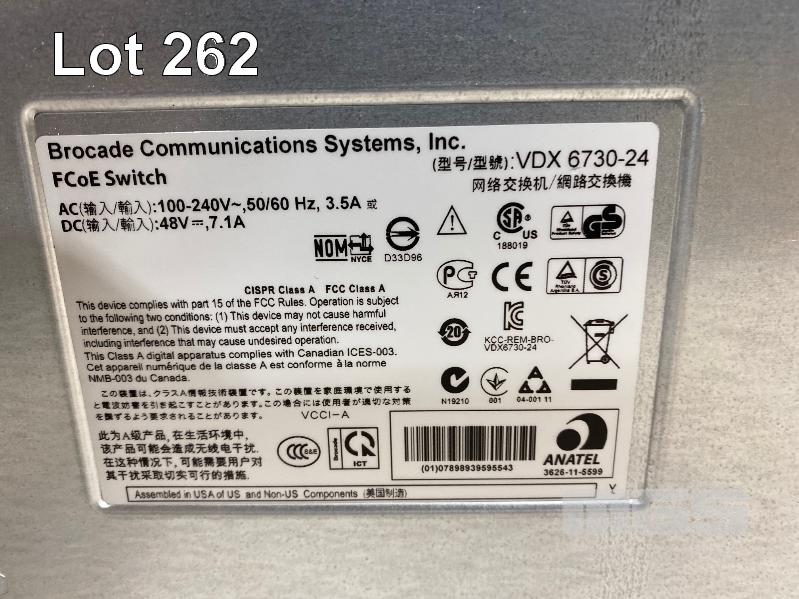 BROCADE VDX 6730 FIBRE CHANNEL SWITCH, BR-VDX6730-24-F (NO CABLES) S/N:BWW2522H019