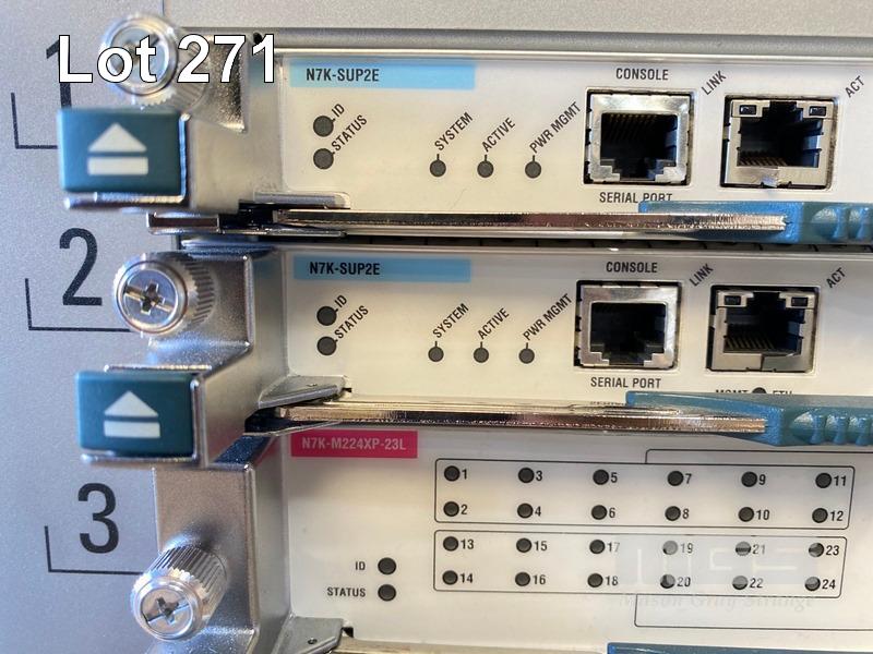 CISCO NEXUS 7000 SERIES SWITCH CHASSIS, N7K-C7009 V01 WITH 2 x N7K-SUP2E, 2 x N7K-M224XP-23L, 2 x N7K-F248XP-25E, 5 x N7K=C7009-FAB-2, 2 x N7K-AC-6.0KW PSU WITH RAILS & 4 x IEC C19-C20 CABLES 15A S/N:JAF1730ALQL