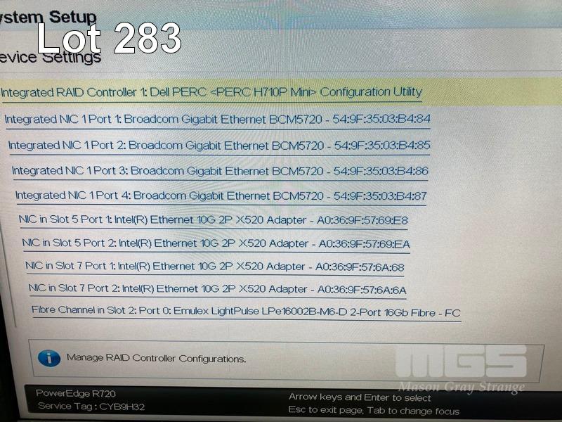 RACKMOUNT SERVER, DELL POWEREDGE R720, 2U, 2 x XEON E5-2650L v2 @ 1.7GHz, 256GB ECC DDR3 RAM, 4 x 300GB SAS HDD, DVD-ROM, 2 x DUAL-PORT 10GbE SFP ADAPTERS (0XYT17), 2 x DUAL-PORT 16GB FIBRE ADAPTERS (06VK2R), 2 x 750W PSU WITH RAILS (NO CABLES) S/N:CYB9H32