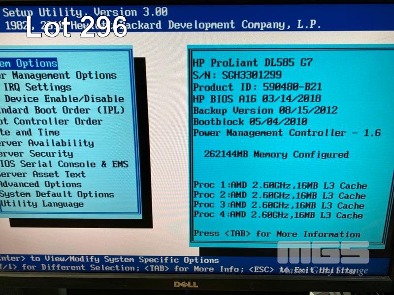 RACKMOUNT SERVER, HP PROLIANT DL585 G7, 4U, 4 x AMD OPTERON 6282 SE @ 2.6GHz, 256GB ECC DDR3 RAM, 3 x 300GB SAS HDD 1 x 146GB SAS HDD, DVD-ROM, 2 x HP STORAGEWORKS FC2142 ADAPTER, 4 x PSU (NO CABLES) S/N:SGH3301299