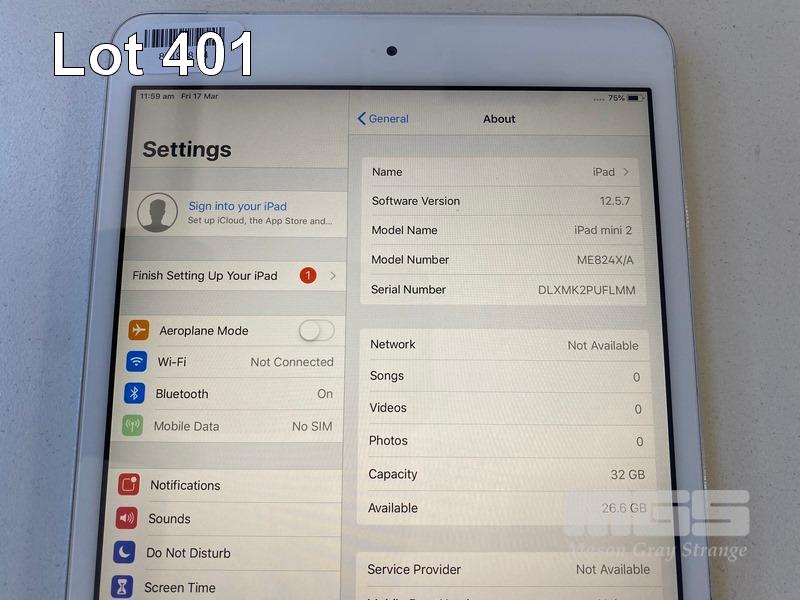 APPLE iPAD MINI 2, 32GB, Wi-Fi, CELLULAR, SILVER, MODEL A1490 (NO CABLE, NO CHARGER) S/N:DLXMK2PUFLMM
