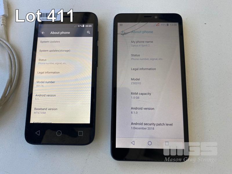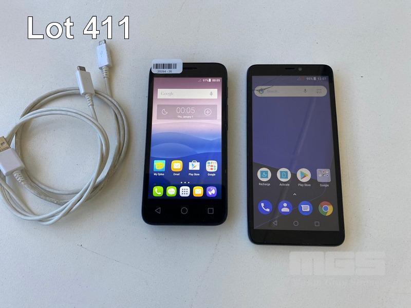 OPTUS X SPIRIT 2 SMARTPHONE, MODEL Z50310, 8GB (DAMAGED SCREEN) ALCATEL ONE TOUCH PIXI 3 SMARTPHONE, MODEL 5017A, 4GB (OPTUS) WITH USB CABLES (NO CHARGER)