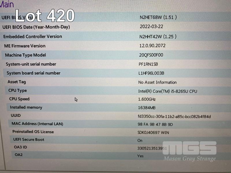 LAPTOP, LENOVO THINKPAD X1 YOGA, TYPE 20QF, CORE i5 8265U (8TH GEN) @ 1.6GHz, 16GB DDR4 RAM, 256GB NVMe M.2 SSD, 14" TOUCHSCREEN (1920x1080), INTEL UHD GRAPHICS, Wi-Fi, BLUETOOTH, STYLUS, WINDOWS 11 PRO INSTALLED & USB-C POWER SUPPLY (NOTE: MINOR MARKS ON SCREEN) S/N:PF1RN1SB