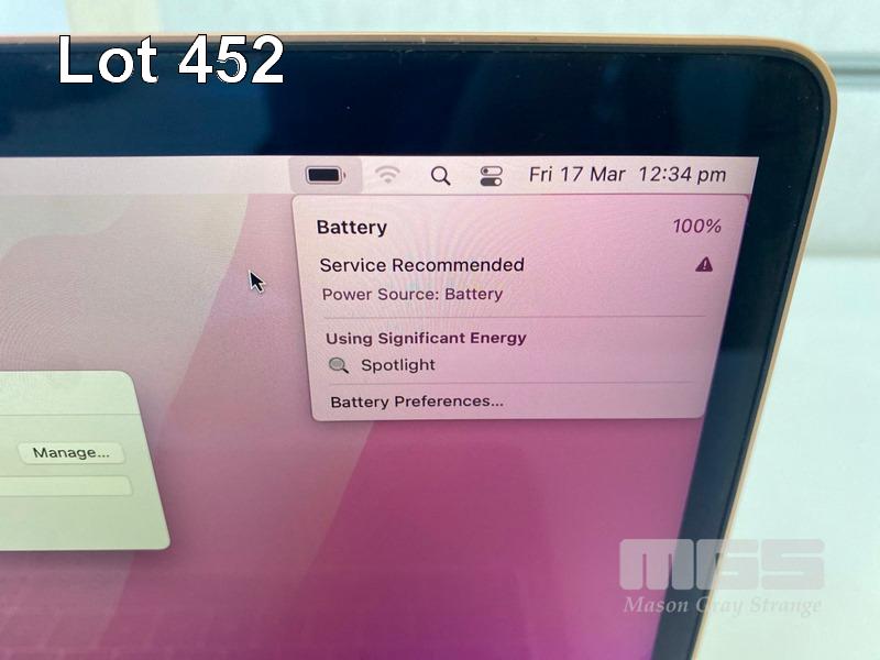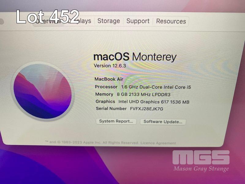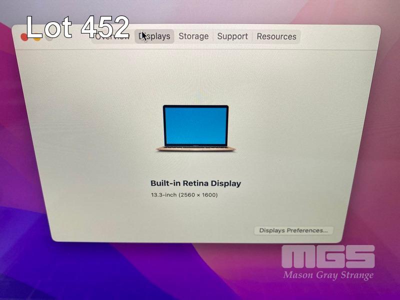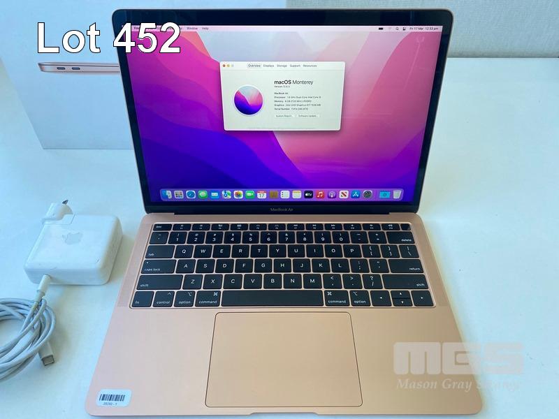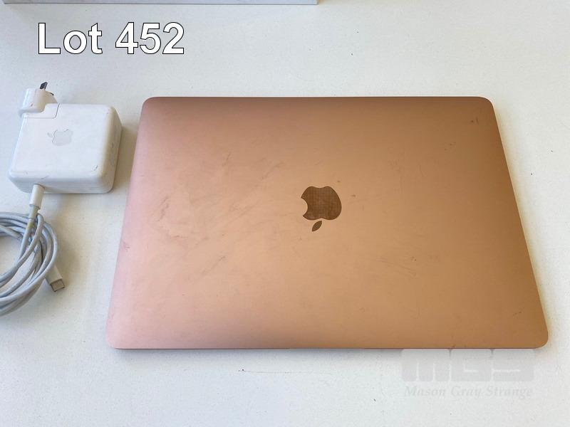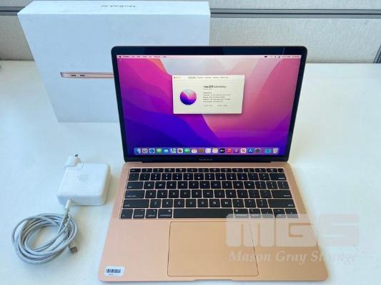 LAPTOP, APPLE MACBOOK AIR (A1932) (GOLD), CORE i5 8210Y (8TH GEN) @ 1.6GHz, 8GB DDR3 RAM, 256GB SSD, 13.3" RETINA WIDESCREEN (2560x1600), INTEL UHD GRAPHICS 617, Wi-Fi, MAC OS 12.6 INSTALLED & USB-C POWER SUPPLY (NOTE: BATTERY SERVICE RECOMMENDED, MINOR DAMAGE TO CASING) S/N:FVFXJ28EJK7G