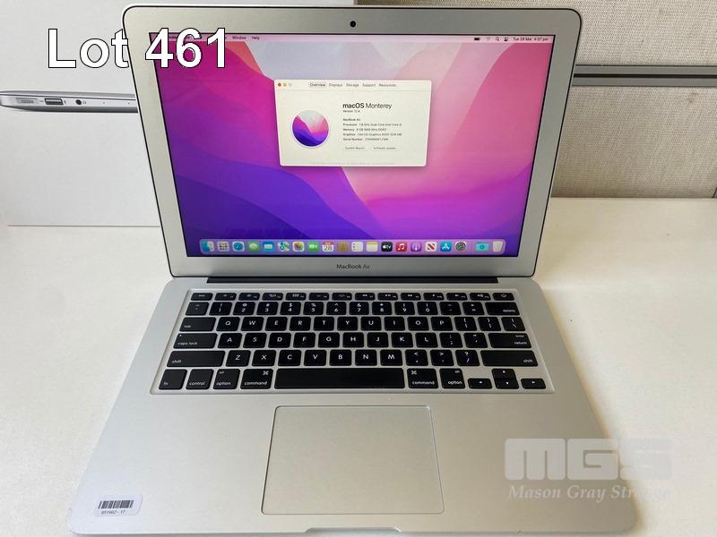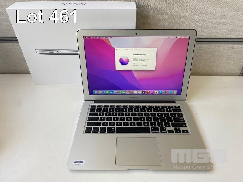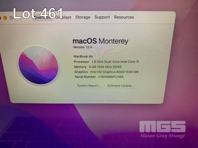 LAPTOP, APPLE MACBOOK AIR (A1466), CORE i5 5350U (5TH GEN) @ 1.8GHz, 8GB DDR3 RAM, 128GB SSD, 13.3" WIDESCREEN (1440x900), INTEL HD GRAPHICS 6000, Wi-Fi, BLUETOOTH, MAC OS 12 INSTALLED & POWER SUPPLY S/N:C1MW86MTJ1WK