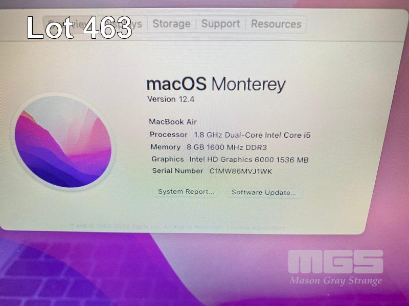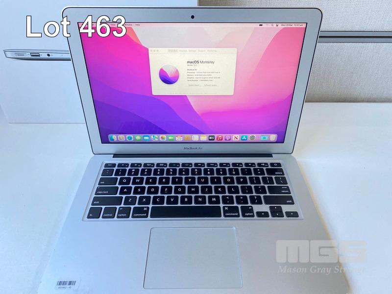 LAPTOP, APPLE MACBOOK AIR (A1466), CORE i5 5350U (5TH GEN) @ 1.8GHz, 8GB DDR3 RAM, 128GB SSD, 13.3" WIDESCREEN (1440x900), INTEL HD GRAPHICS 6000, Wi-Fi, BLUETOOTH, MAC OS 12 INSTALLED & POWER SUPPLY S/N:C1MW86MVJ1WK