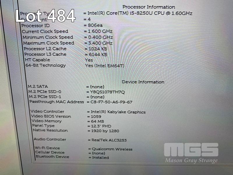 TABLET PC, DELL LATITUDE 5290, CORE i5 8250U (8TH GEN) @ 1.6GHz, 8GB DDR3 RAM, 256GB NVMe M.2 SSD, 12.3" TOUCHSCREEN (1920x1080), INTEL KABYLAKE GRAPHICS, Wi-Fi, BLUETOOTH, WINDOWS 11 PRO INSTALLED, KEYBOARD & USB-C POWER SUPPLY (NOTE: MINOR MARKS ON SCREEN) S/N:FD4BTT2