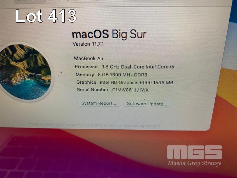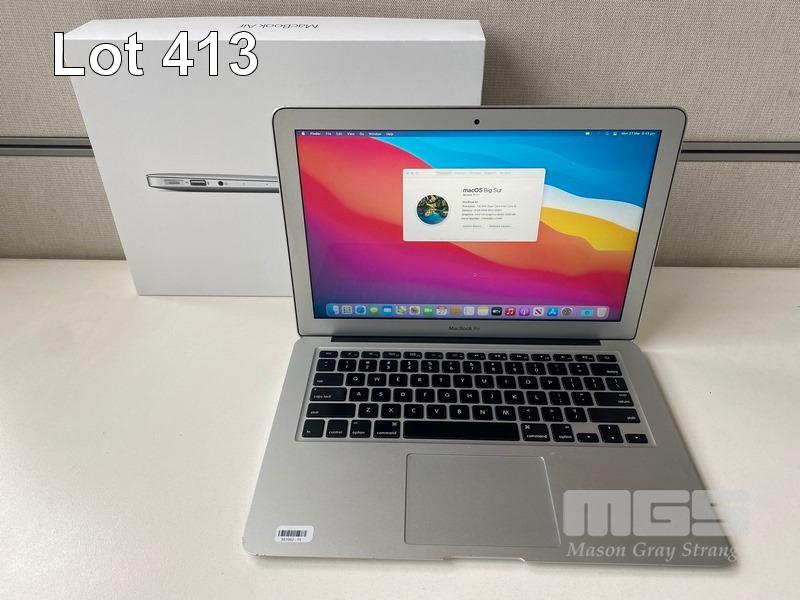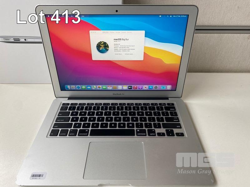 LAPTOP, APPLE MACBOOK AIR (A1466), CORE i5 5350U (5TH GEN) @ 1.8GHz, 8GB DDR3 RAM, 128GB SSD, 13.3" WIDESCREEN (1440x900), INTEL HD GRAPHICS 6000, Wi-Fi, BLUETOOTH, MAC OS 11.7 INSTALLED & POWER SUPPLY S/N:C1MW861JJ1WK