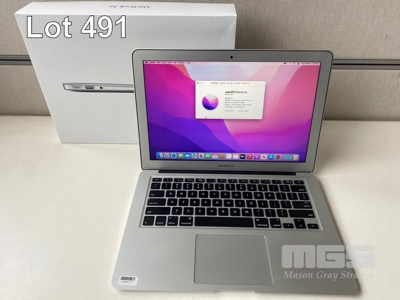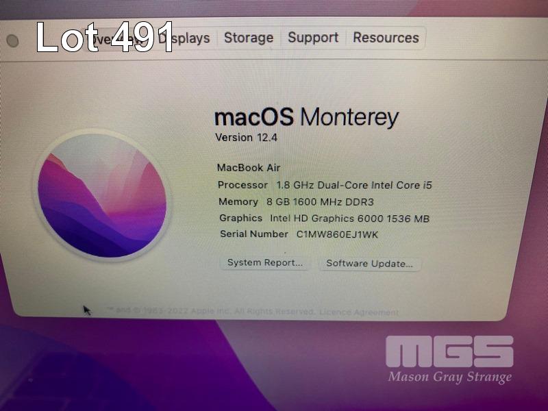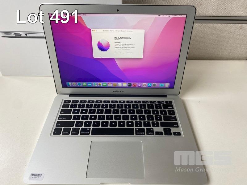 LAPTOP, APPLE MACBOOK AIR (A1466), CORE i5 5350U (5TH GEN) @ 1.8GHz, 8GB DDR3 RAM, 128GB SSD, 13.3" WIDESCREEN (1440x900), INTEL HD GRAPHICS 6000, Wi-Fi, BLUETOOTH, MAC OS 12 INSTALLED & POWER SUPPLY (NOTE: MINOR DAMAGE TO CASING) S/N:C1MW860EJ1WK