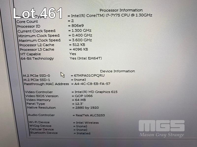 TABLET PC, DELL LATITUDE 7285, CORE i7 7Y75 (7TH GEN) @ 1.3GHz, 16GB DDR3 RAM, 512GB NVMe M.2 SSD, 12.3" TOUCHSCREEN (2880x1920), INTEL HD GRAPHICS 615, Wi-Fi, BLUETOOTH, WINDOWS 10 PRO INSTALLED, KEYBOARD, STYLUS & USB-C POWER SUPPLY S/N:CN76PH2