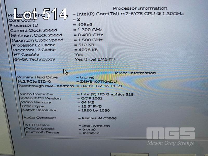 TABLET PC, DELL LATITUDE 7275, CORE m7-6Y75 (6TH GEN) @ 1.2GHz, 8GB DDR3 RAM, 512GB NVMe M.2 SSD, 12.5" TOUCHSCREEN (1920x1080), INTEL HD GRAPHICS 515, Wi-Fi, BLUETOOTH, WINDOWS 10 PRO INSTALLED, KEYBOARD (NO USB-C POWER SUPPLY) WITH DELL WD15 USB-C DOCKING STATION & 130W POWER SUPPLY (NOTE: BATTERY NOT CHARGING) S/N:4W70VF2