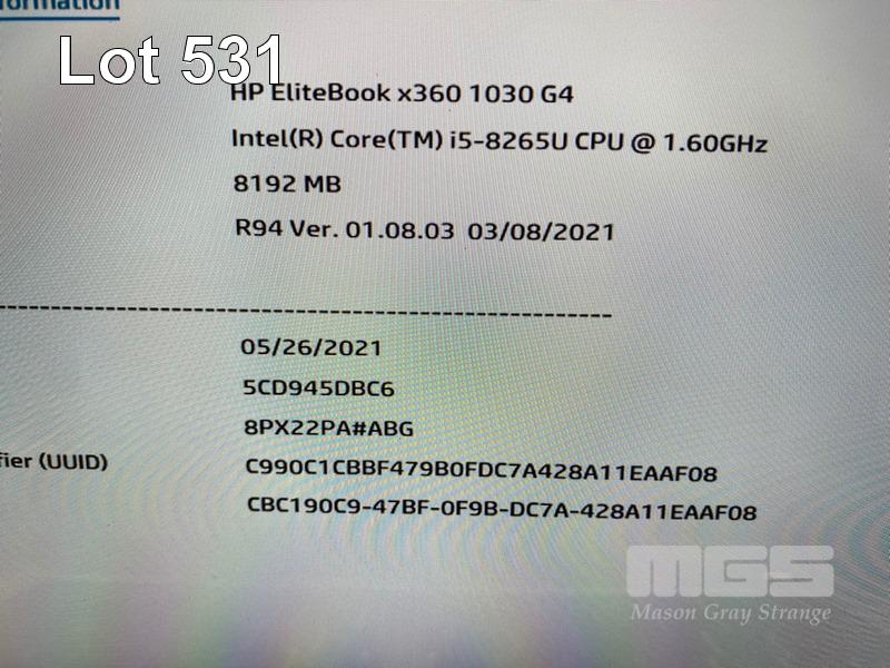 LAPTOP, HP ELITEBOOK x360 1030 G4 (8PX22PA), CORE i5 8265U (8TH GEN) @ 1.6GHz, 8GB DDR4 RAM, 256GB NVMe M.2 SSD, 13.3" TOUCHSCREEN (1920x1080), INTEL UHD GRAPHICS 620, Wi-Fi, BLUETOOTH, WINDOWS 11 PRO INSTALLED, STYLUS & USB-C POWER SUPPLY (NOTE: TOUCHSCREEN FAULT - NON RESPONSIVE) S/N:5CD945DBC6