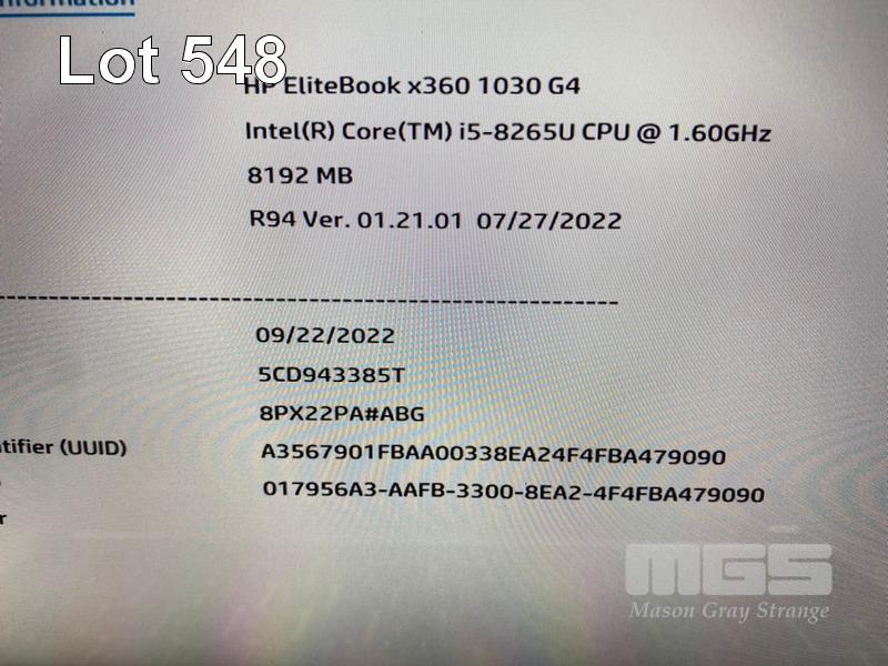 LAPTOP, HP ELITEBOOK x360 1030 G4 (8PX22PA), CORE i5 8265U (8TH GEN) @ 1.6GHz, 8GB DDR4 RAM, 256GB NVMe M.2 SSD, 13.3" TOUCHSCREEN (1920x1080), INTEL UHD GRAPHICS 620, Wi-Fi, BLUETOOTH, WINDOWS 11 PRO INSTALLED, STYLUS & USB-C POWER SUPPLY (NOTE: TOUCHSCREEN FAULT - NON RESPONSIVE) S/N:5CD943385T
